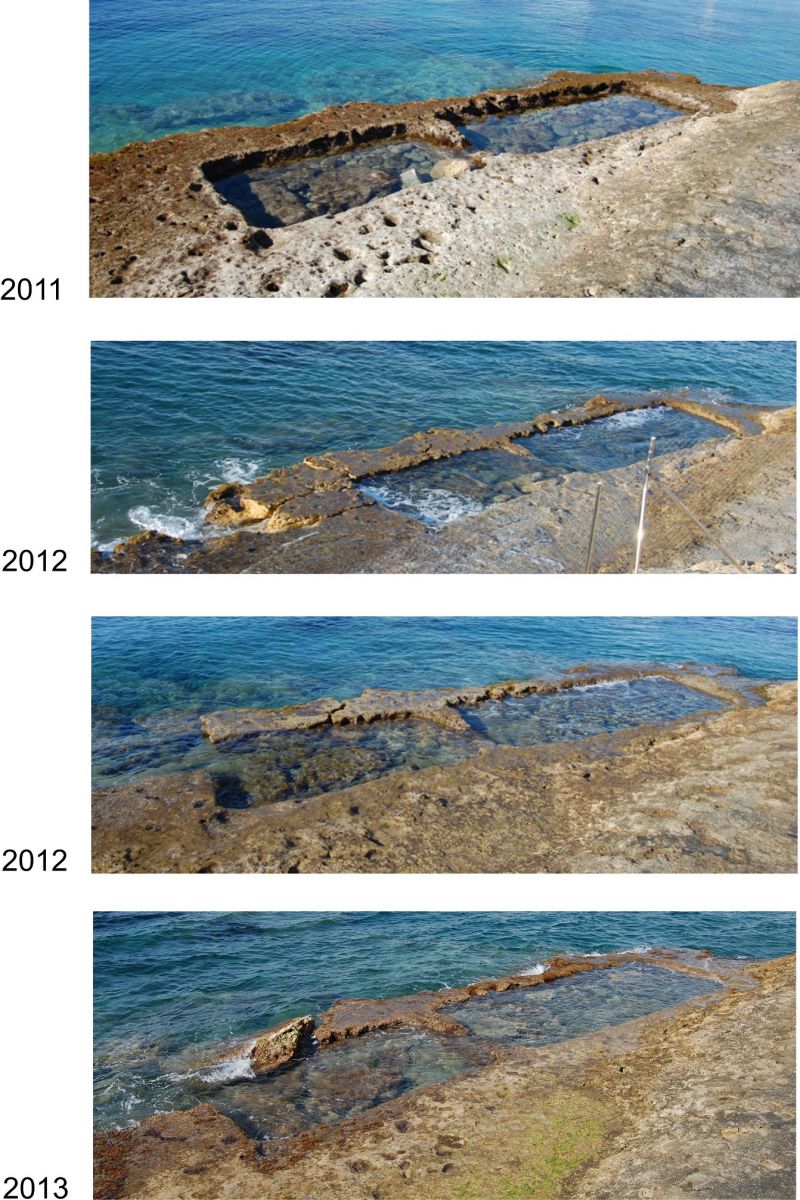| Proceso de degradación de las piscinas nor-occidentales de El Campello (imagen de https://www.marqalicante.com/contenido/genericas/reciente%203-7-13%20-%2050.jpg) |